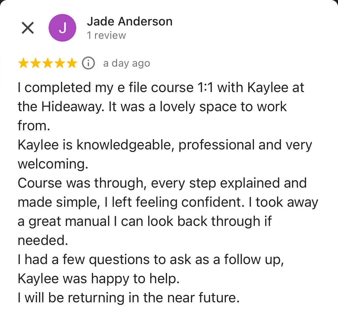 The Hair and Beauty Hideaway online courses are created, ran and assessed by Kaylee.