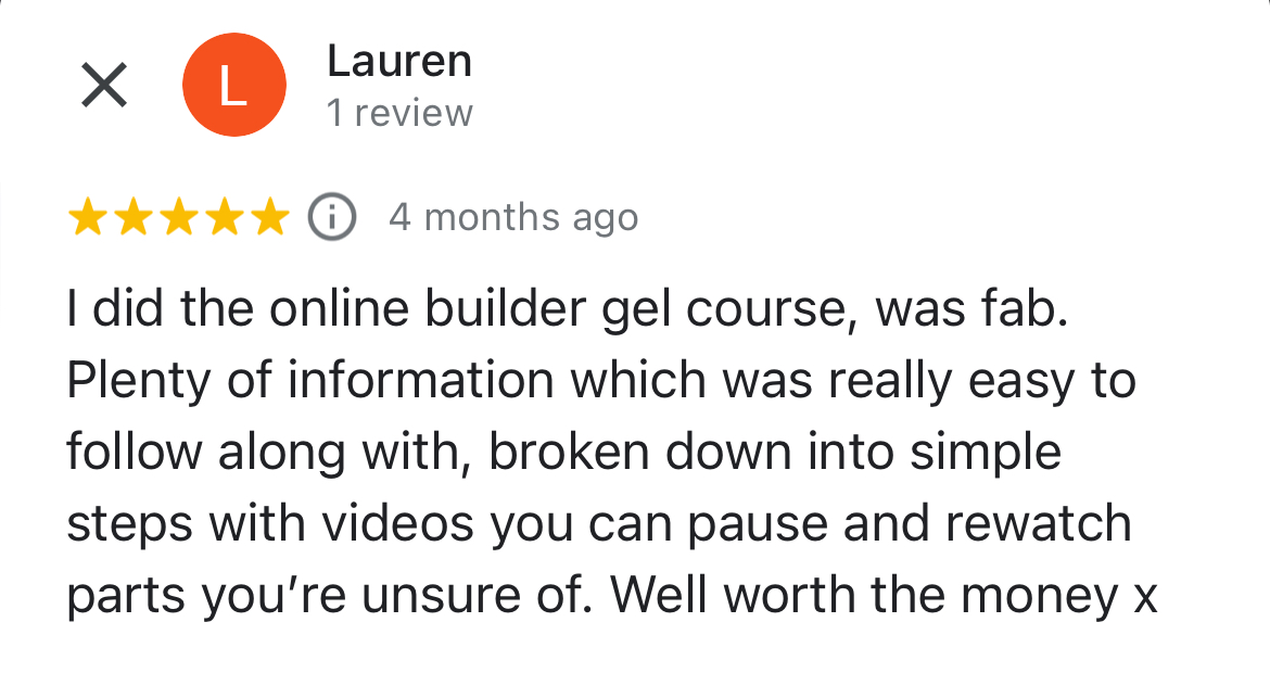 I don't believe that fully online training gives you the right level of knowledge/skill so included in all my courses is a LIVE 1:1 video session with me aswel. (Excluding ePedi)